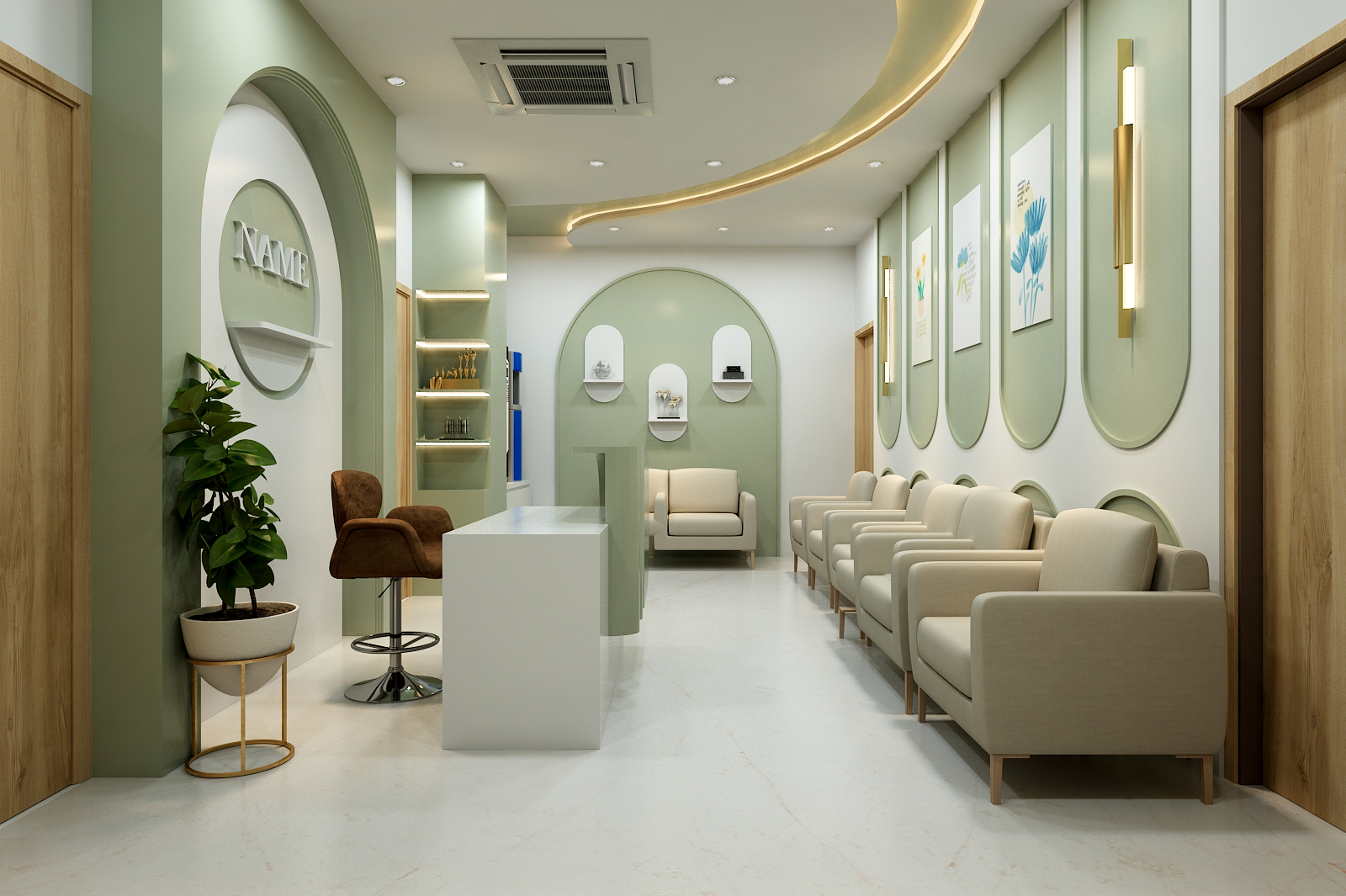 Modern, patient-centered interiors creating a serene, functional, and welcoming environment.